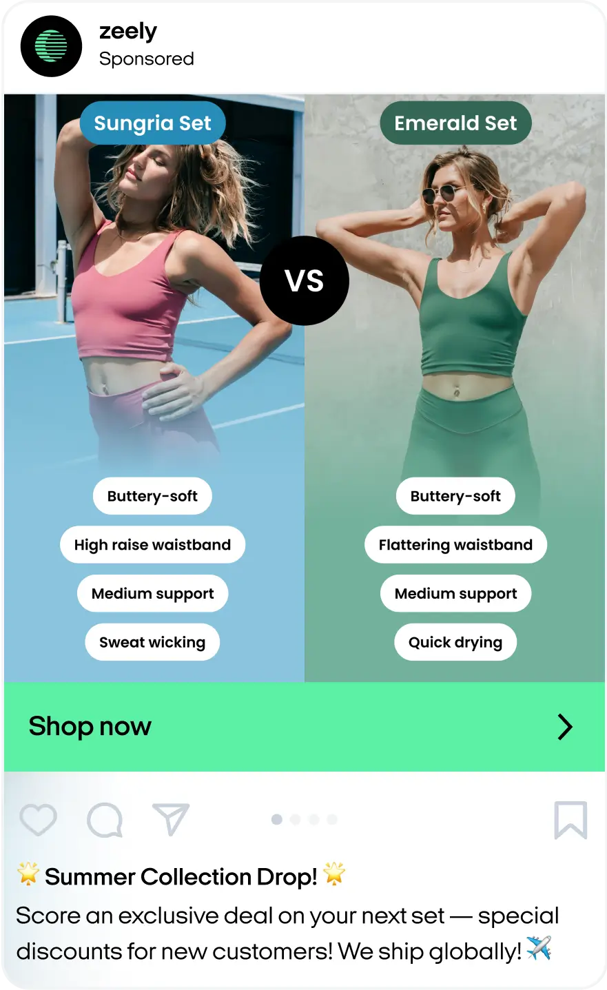 Next, simply connect your online store to Zeely and select the products you want to promote. Zeely will help you generate high-performing ad creatives and launch ads on different platforms, such as Facebook and Instagram. No marketing experience is needed.